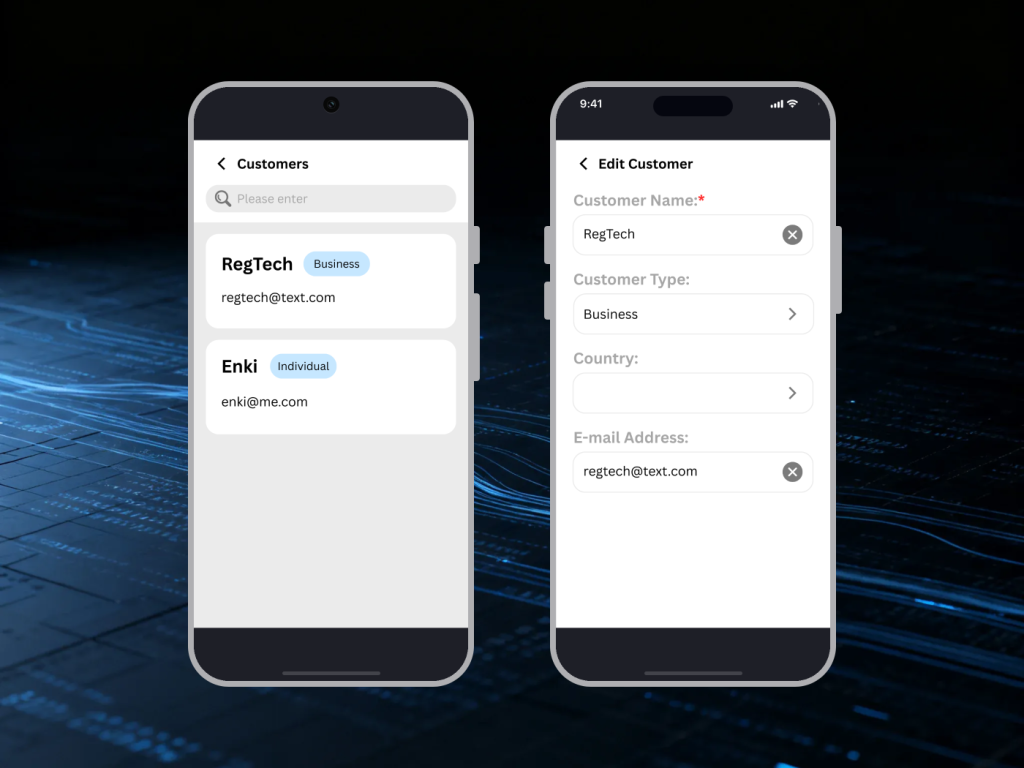 Add, edit, or delete customer profiles easily—all from a single platform.Effortlessly search and filter customer details by name or ID number.Instantly generate invoices or quotes from customer data—no manual entry required.