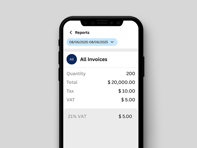 • Display subtotal, discount, tax rate, total amount, and customer info.